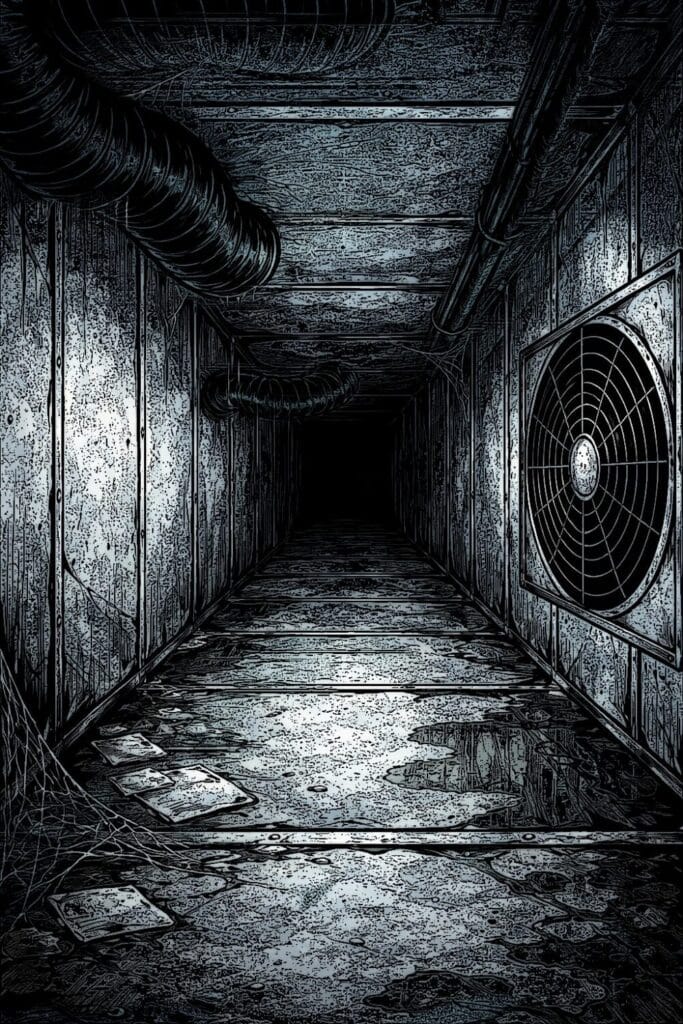 The hotel was already sealed off when we crawled out of the shaft. It’s amazing how long a person can survive when they’ve almost given up. At some point, we got thinner and could fit through the shaft again.