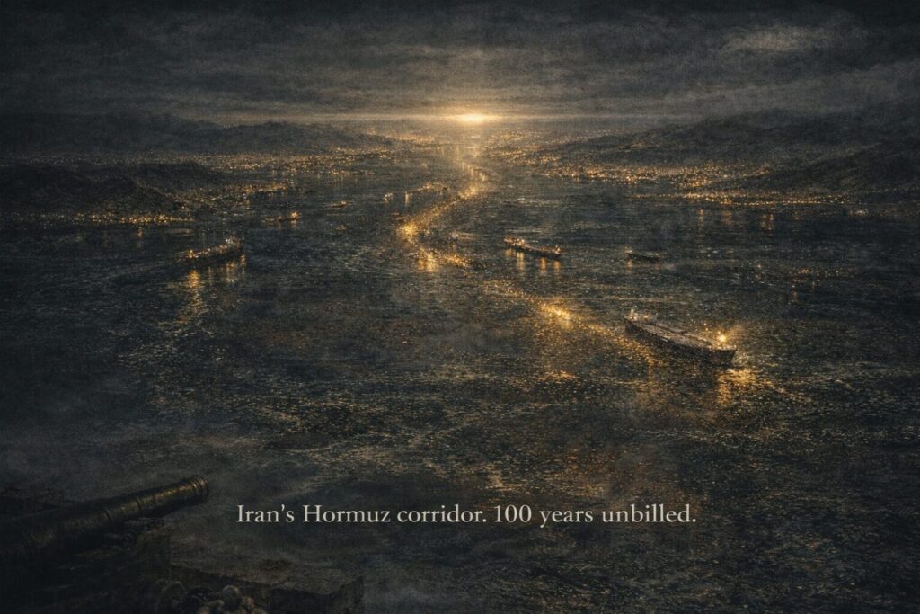 The Strait of Hormuz did not become the world’s most critical energy corridor by accident. Britain extracted the first concession in 1901. America consolidated Western dominance after 1945 under arrangements the producing states had no power to refuse. Iran did not invite this traffic, design this corridor, or share in its proceeds. It has the longest coastline on the Persian Gulf, was the first target of Western extraction, and spent decades under sanctions while every legal path to compensation was closed. It absorbed the damage — poisoned fisheries, contaminated coastlines, depleted marine ecosystems, the slow suffocation of a way of life. The corridor enriched everyone who used it. For Iran, it left nothing but the cost.